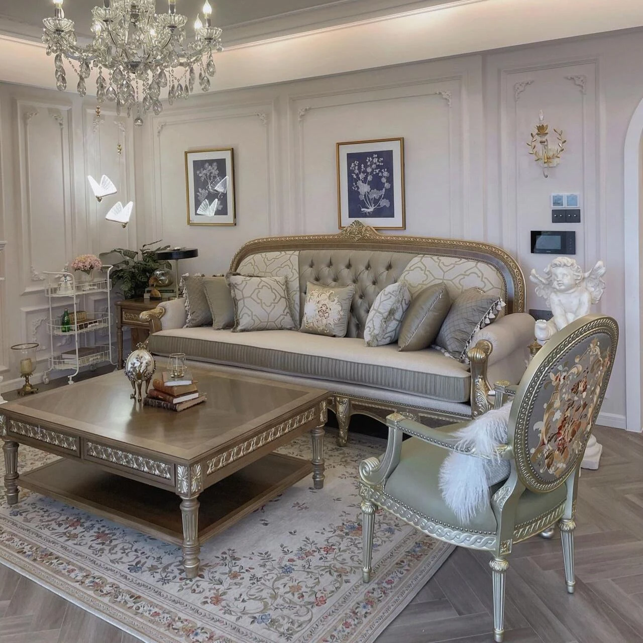 FOOKYIK French Versailles Style Four-Seat Sofa - Elegant Villa Lounge Chair for Stylish Living Spaces